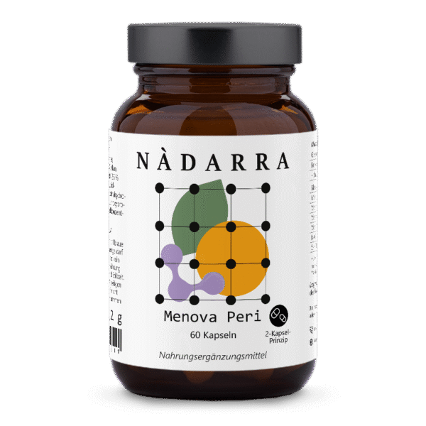 Unser Menova Peri enthält eine Kombination aus Brokkoli-Extrakt, Mönchspfeffer, B-Vitaminen, NAC und 5-HTP und wurde speziell für Frauen in der Perimenopause entwickelt. Es ist darauf ausgerichtet, den Östrogenabbau zu unterstützen und hormonelle Schwankungen in der Perimenopause auszugleichen. Um eine optimale Bioverfügbarkeit zu gewährleisten, sind die Nährstoffe auf 2 Kapseln aufgeteilt. Ein Glas enthält 60 Kapseln und reicht so für 1 Monat.