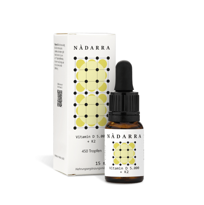 In vielen Vitamin D Produkten ist zudem auch Vitamin K2 enthalten. Wir lassen Dir die Wahl und bieten Vitamin D mit und ohne Vitamin K2 an. Die Frage, wie Vitamin K2 die Wirkung von Vitamin D beeinflusst, ist derzeit noch nicht eindeutig beantwortet. Fest steht, dass Vitamin K2 neben dem Einfluss auf die Blutgerinnung auch zur Knochengesundheit beiträgt, da es essentiell für die Synthese von Osteocalcin ist.